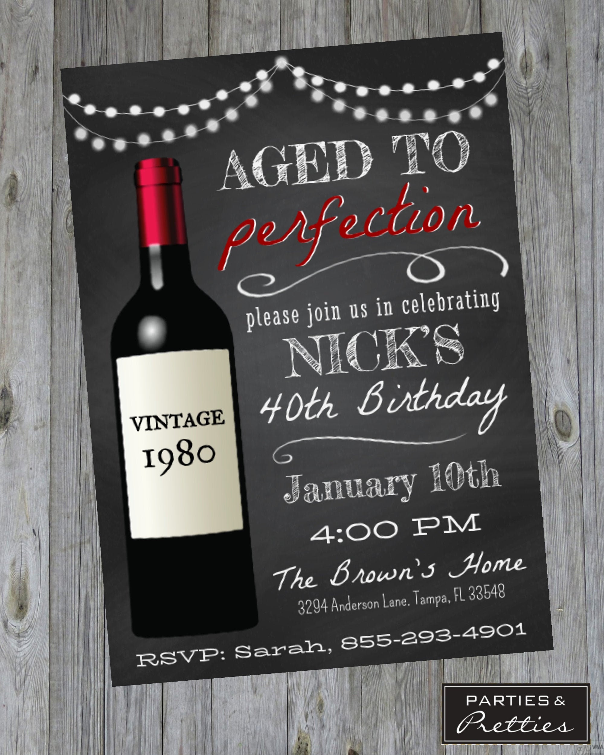 Birthday Party Invitation Aged To Perfection Wine Theme Etsy
